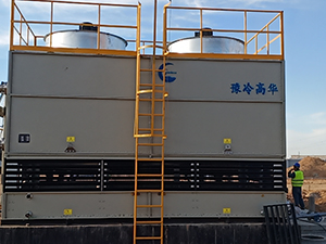 工作原理:热介质先通过空冷翅片管束进行冷却,然后进入蒸发管束靠喷淋水蒸发潜热带走剩余热量,空冷管束和蒸发冷管束分开布置,相互不干涉,各自配置的轴流风机将热量排入大气,完成换热过程,空冷部分在冬季可以单独运行。